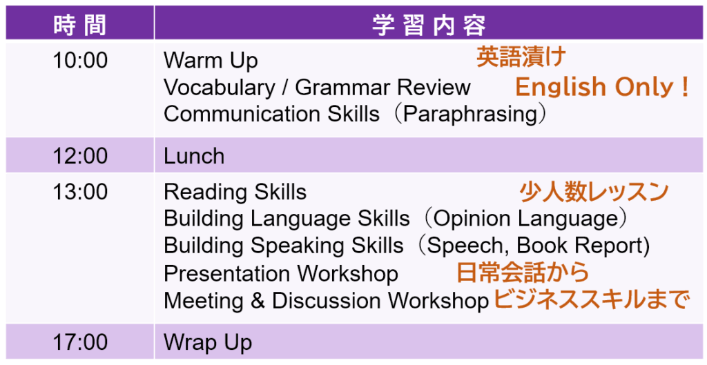 詳細はこちら「英会話集中【1週間・通学コース】」