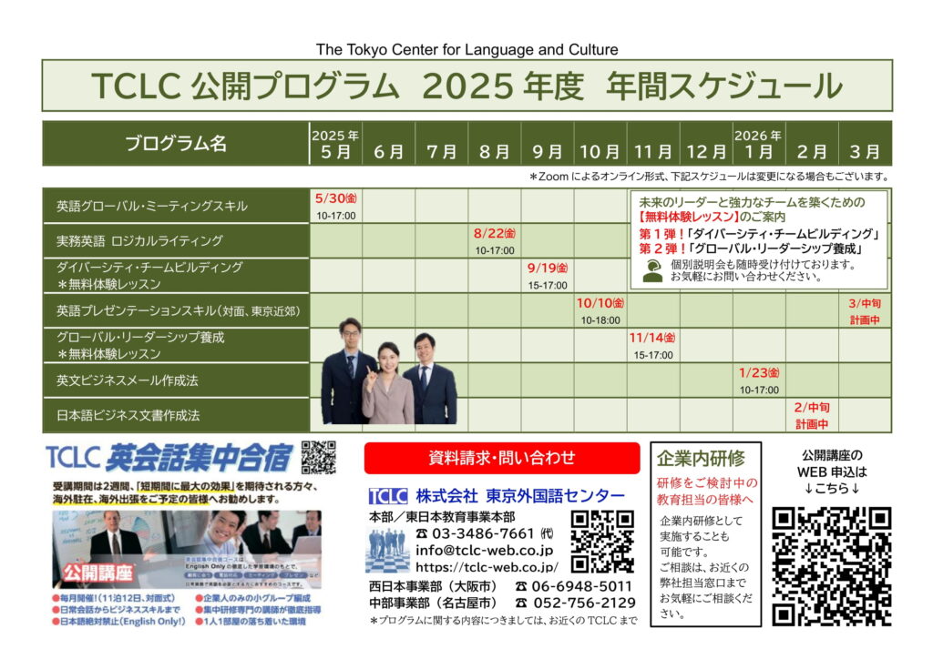 年末も近くなり、何かとお忙しい時期とは存じますが、令和7年度に開催します弊社公開講座の年間スケジュールをご覧いただけましたら幸いです。